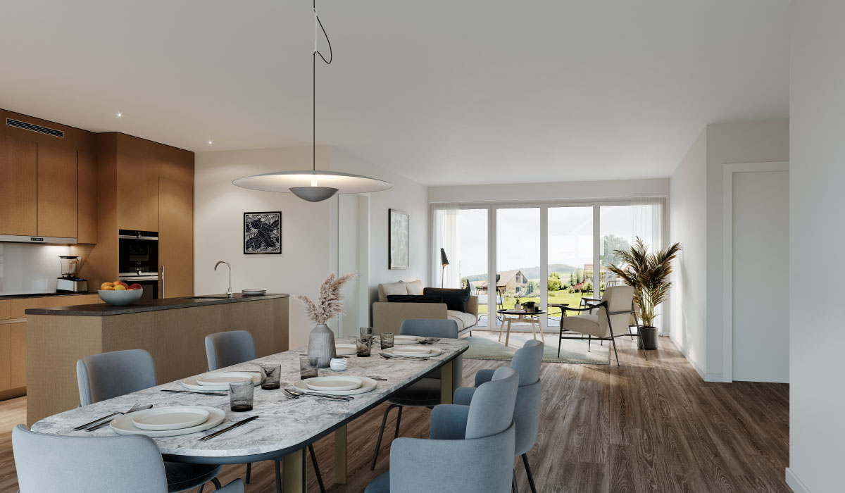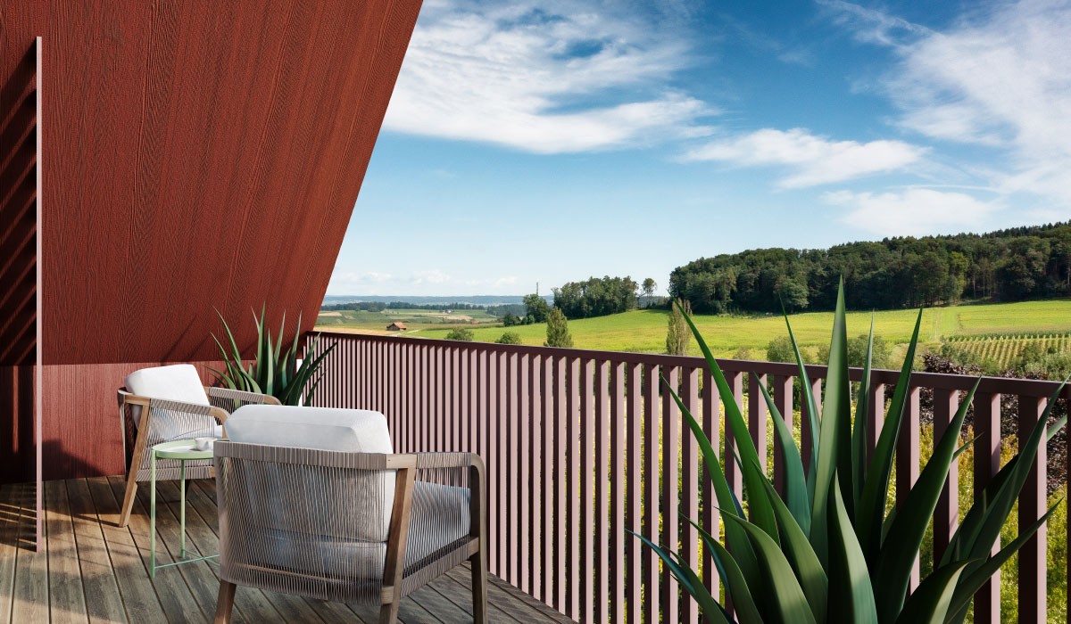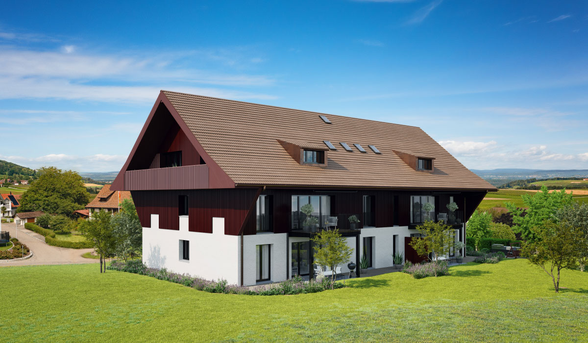 Ihr neues Zuhause: Eine der sechs exklusiven Eigentumswohnungen in Buch am Irchel. Hier tanken Sie neue Kraft in ruhiger Umgebung und schönster Natur. Durchwandern Sie Wälder und Felder. Und kosten Sie nach Lust und Laune die reichhaltigen Angebote für Kultur und Shopping in Winterthur aus. Ihr neues Leben in zwei verlockenden Welten – ohne Kompromisse. Geniessen Sie es.