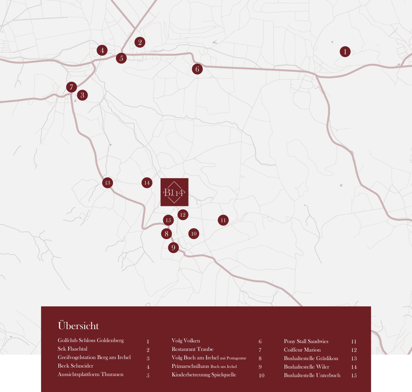 Schnell ein kulinarisches Highlight für das abendliche Kochevent in den eigenen vier Wänden kaufen, für die Fitness sorgen, sich im Garten entspannen oder zum Kultur- und Shoppingtrip nach Winterthur aufbrechen: Im Objekt BI14 in der politischen Gemeinde Buch am Irchel im Kanton Zürich und rund herum geniessen Sie die Vielfalt eines jeden Tages.
